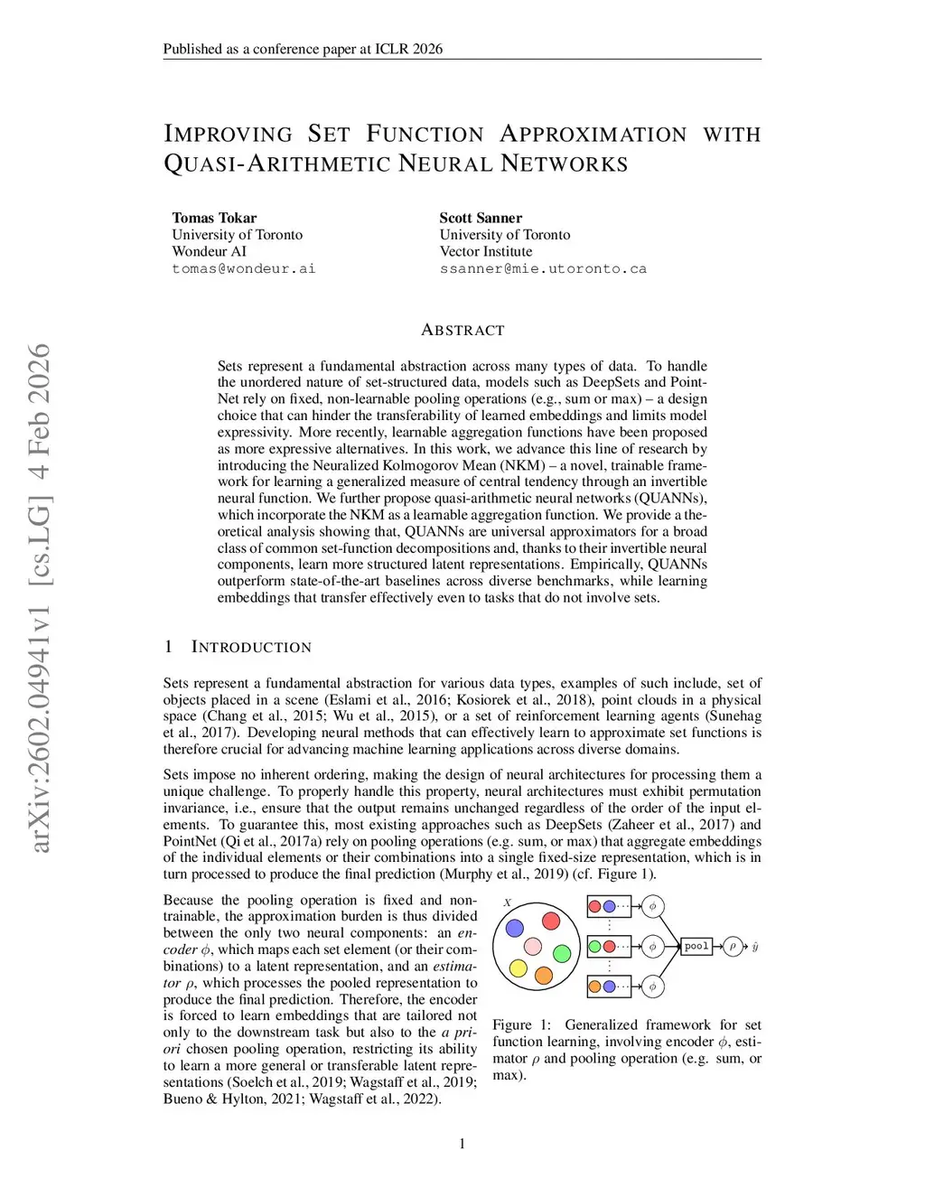 Sets represent a fundamental abstraction across many types of data. To handle the unordered nature of set-structured data, models such as DeepSets and PointNet rely on fixed, non-learnable pooling operations (e.g., sum or max) -- a design choice that can hinder the transferability of learned embeddings and limits model expressivity. More recently, learnable aggregation functions have been proposed as more expressive alternatives. In this work, we advance this line of research by introducing the Neuralized Kolmogorov Mean (NKM) -- a novel, trainable framework for learning a generalized measure of central tendency through an invertible neural function. We further propose quasi-arithmetic neural networks (QUANNs), which incorporate the NKM as a learnable aggregation function. We provide a theoretical analysis showing that, QUANNs are universal approximators for a broad class of common set-function decompositions and, thanks to their invertible neural components, learn more structured latent representations. Empirically, QUANNs outperform state-of-the-art baselines across diverse benchmarks, while learning embeddings that transfer effectively even to tasks that do not involve sets.