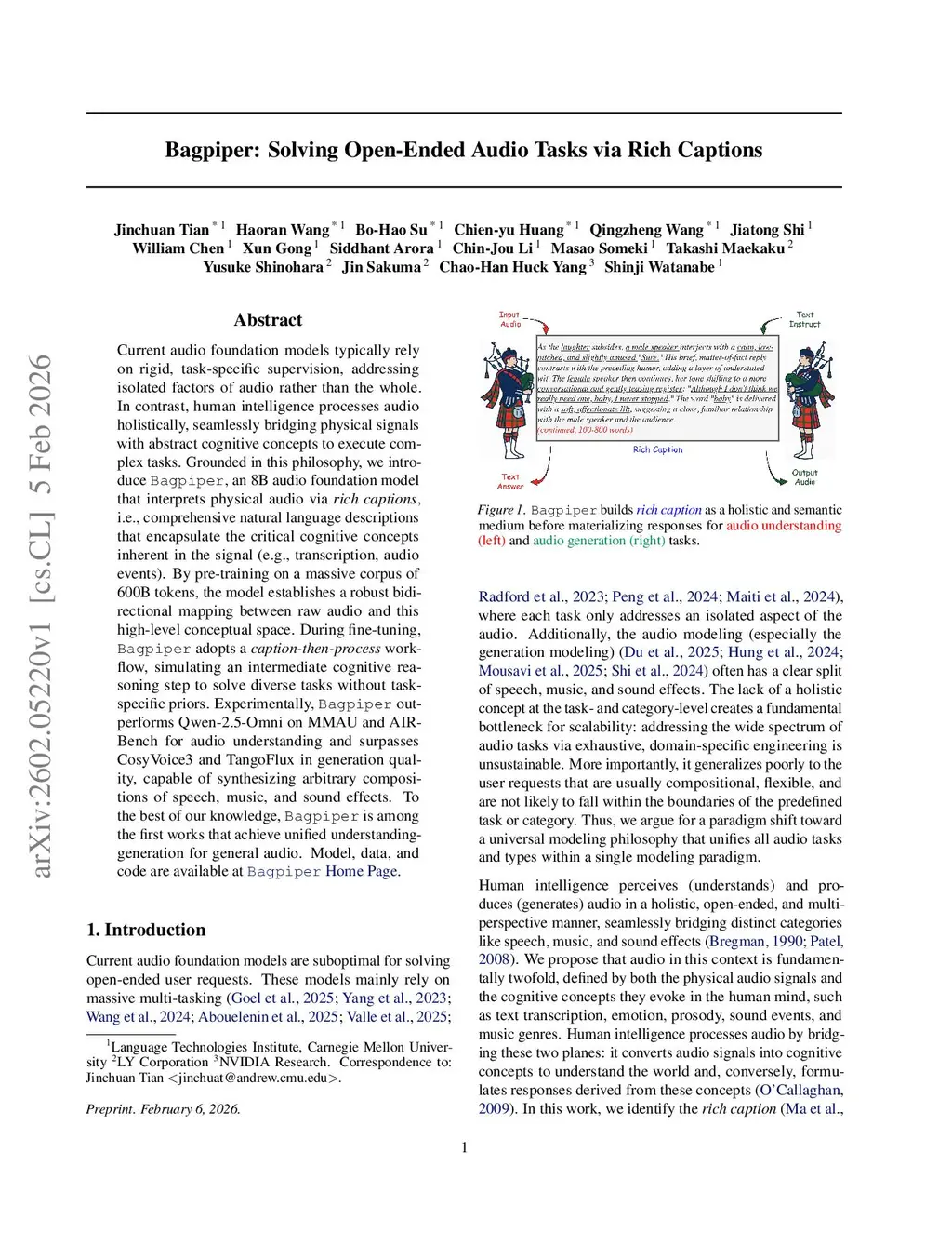 Bagpiper: Solving Open-Ended Audio Tasks via Rich Captions