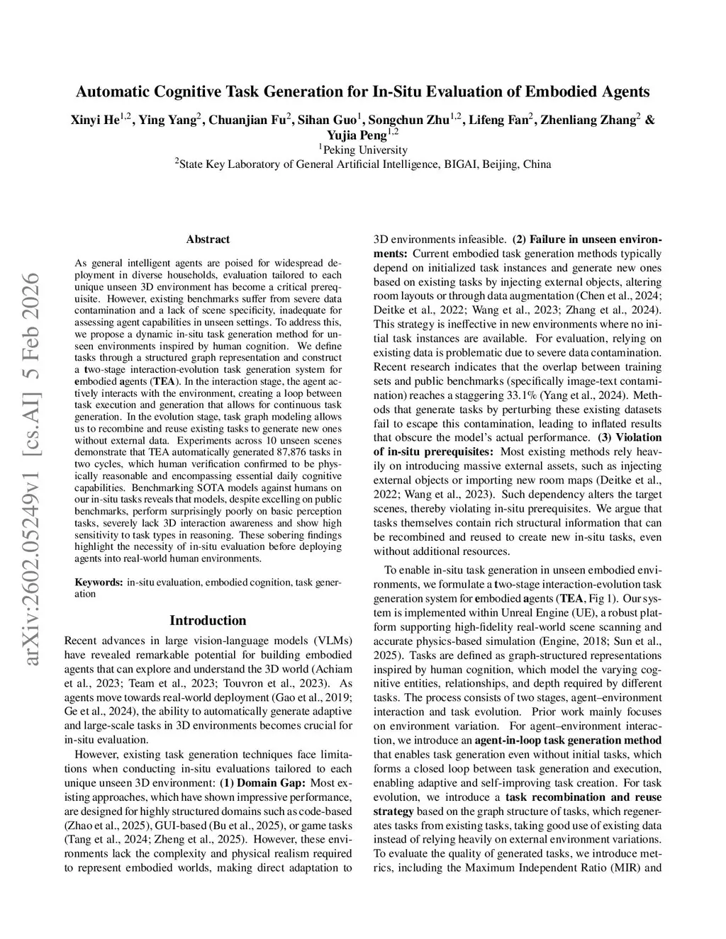 Automatic Cognitive Task Generation for In-Situ Evaluation of Embodied Agents