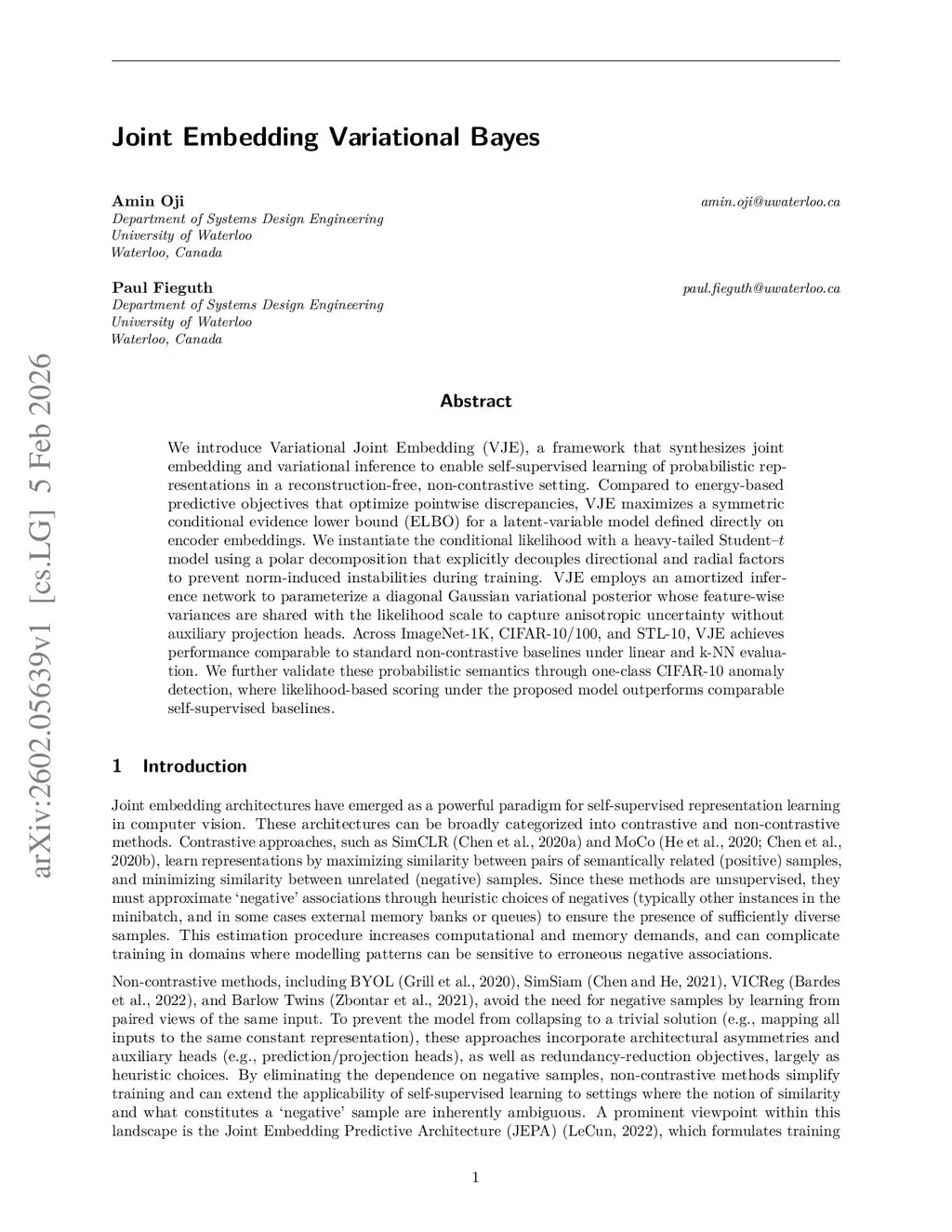 Joint Embedding Variational Bayes