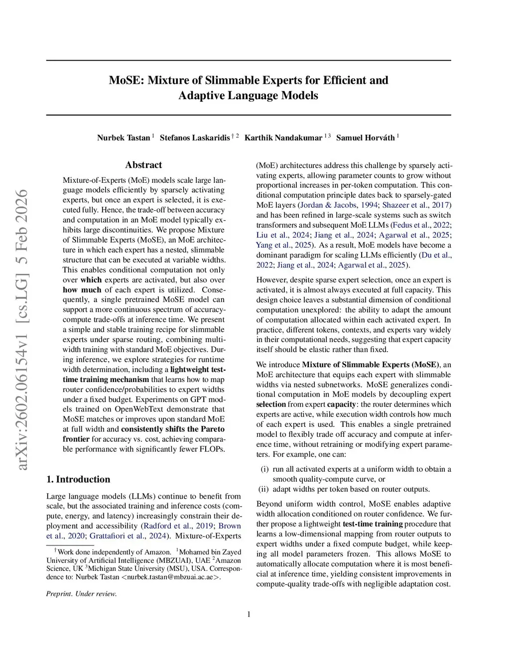 MoSE: Mixture of Slimmable Experts for Efficient and Adaptive Language Models