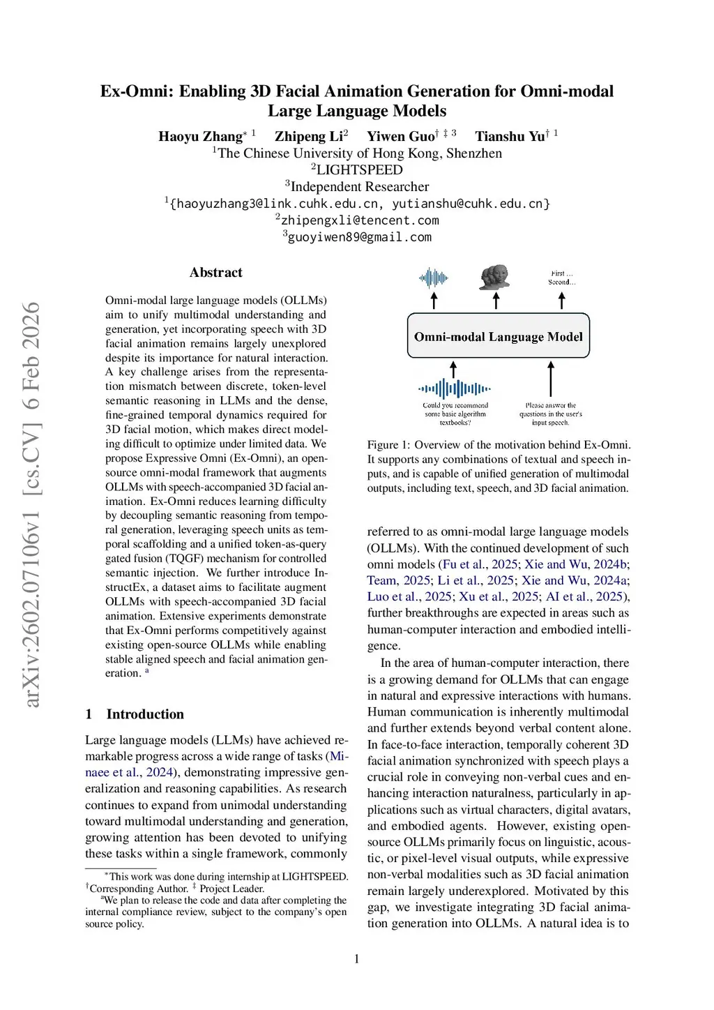 Ex-Omni: Enabling 3D Facial Animation Generation for Omni-modal Large Language Models