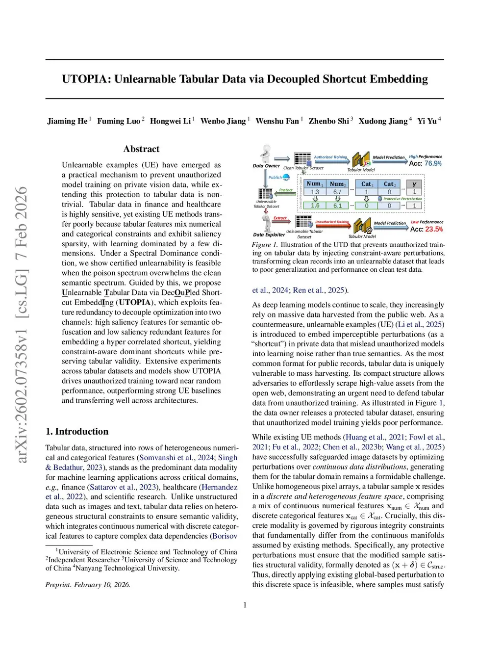UTOPIA: Unlearnable Tabular Data via Decoupled Shortcut Embedding