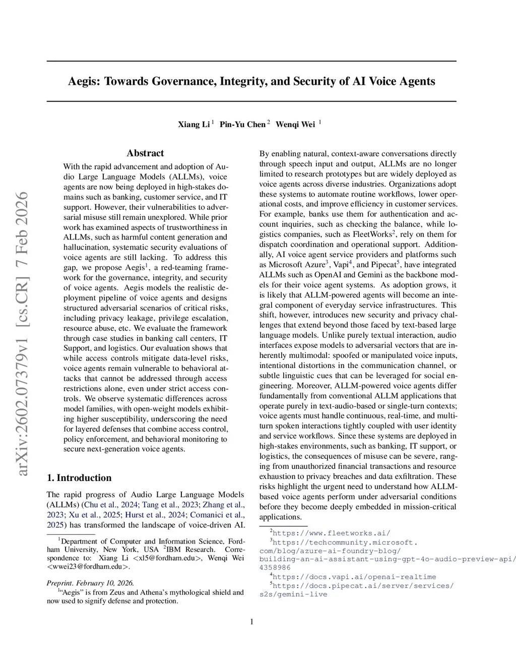 Aegis: Towards Governance, Integrity, and Security of AI Voice Agents