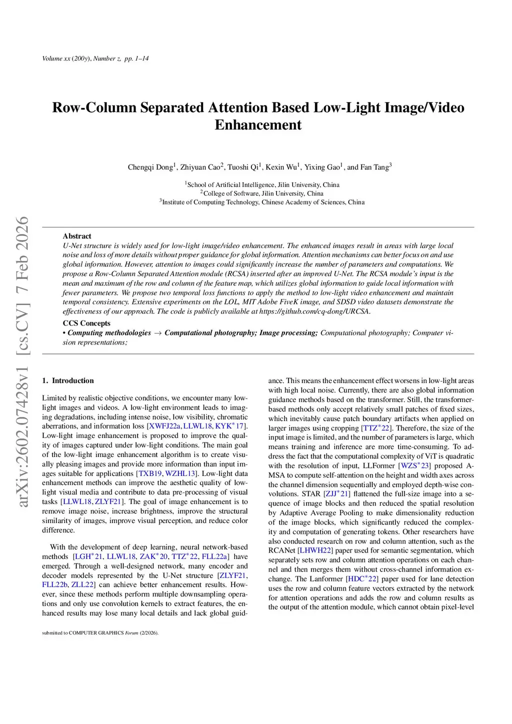 Row-Column Separated Attention Based Low-Light Image/Video Enhancement