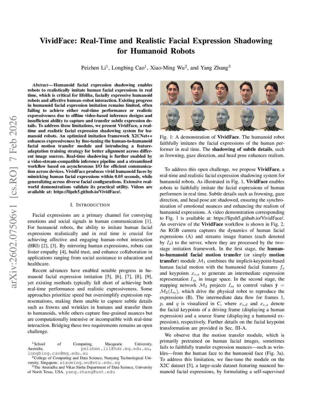 VividFace: Real-Time and Realistic Facial Expression Shadowing for Humanoid Robots