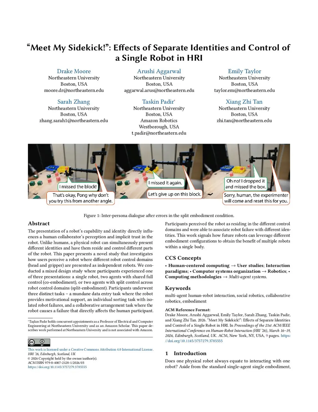 "Meet My Sidekick!": Effects of Separate Identities and Control of a Single Robot in HRI