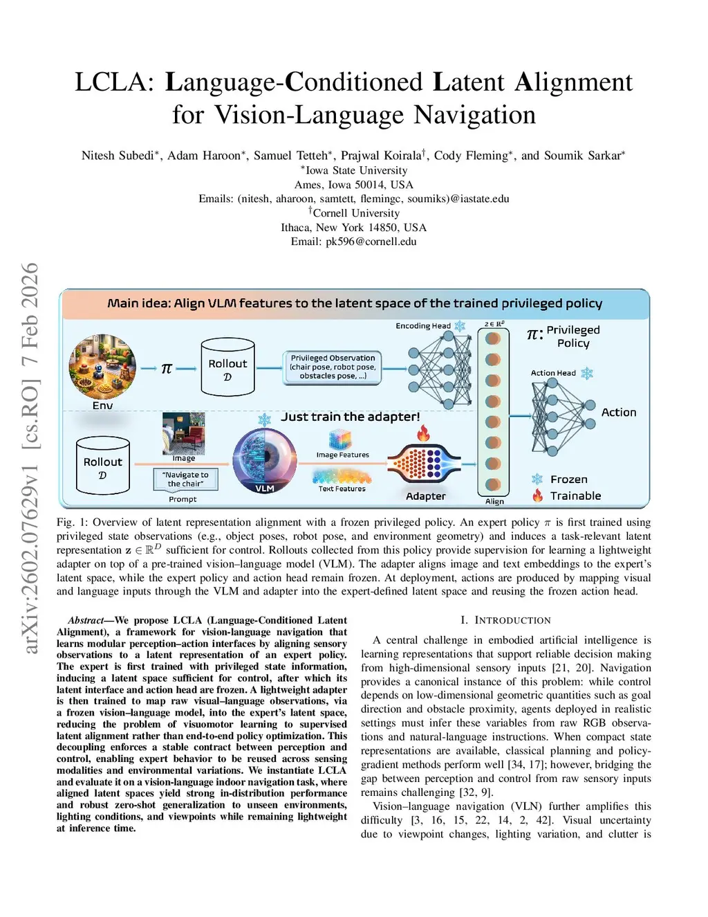 LCLA: Language-Conditioned Latent Alignment for Vision-Language Navigation
