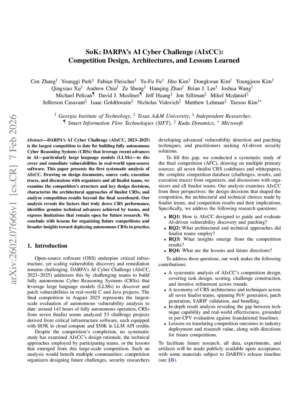 SoK: DARPA's AI Cyber Challenge (AIxCC): Competition Design, Architectures, and Lessons Learned