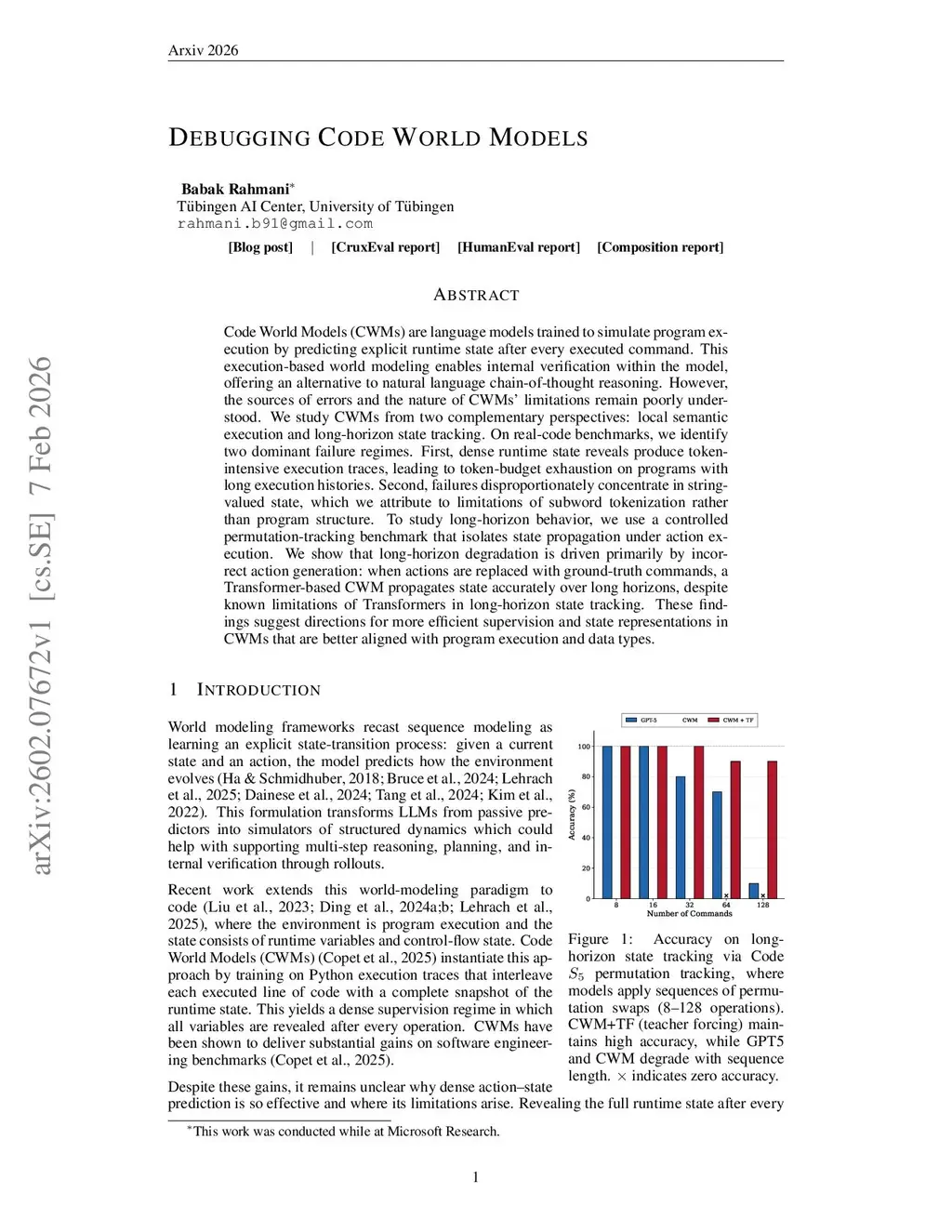 Debugging code world models