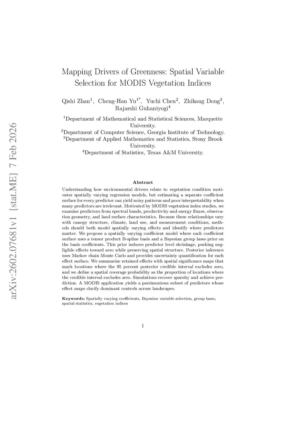 Mapping Drivers of Greenness: Spatial Variable Selection for MODIS Vegetation Indices