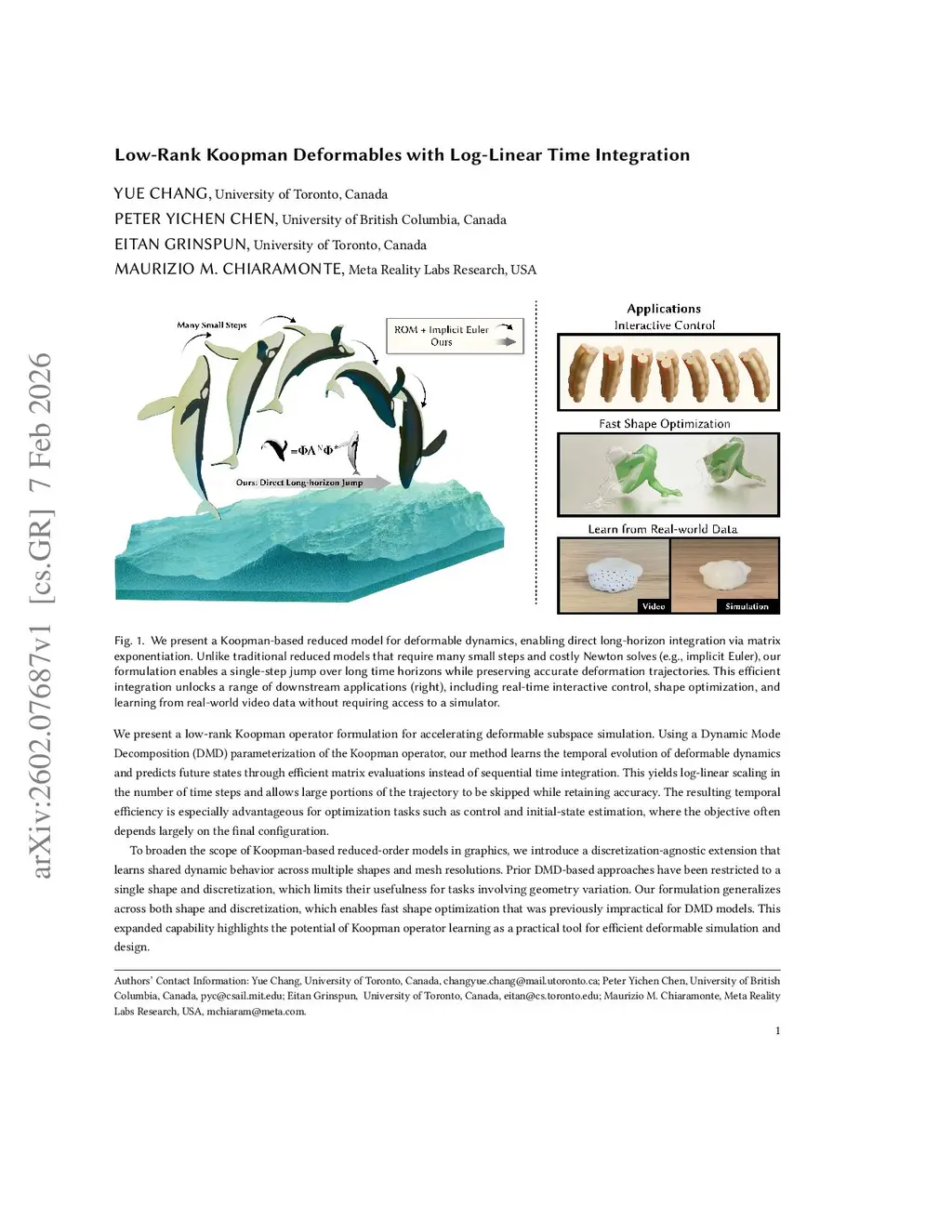 Low-Rank Koopman Deformables with Log-Linear Time Integration