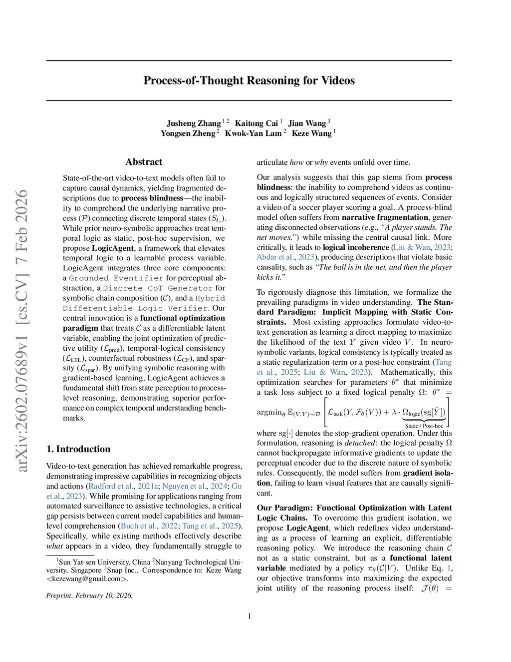 Video understanding requires not only recognizing visual content but also performing temporally grounded, multi-step reasoning over long and noisy observations. We propose Process-of-Thought (PoT) Reasoning for Videos, a framework that makes the reasoning process explicit by structuring video inference into a sequence of lightweight, verifiable steps. PoT interleaves (i) temporal evidence selection, (ii) step-wise state updates, and (iii) constrained answer synthesis, enabling the model to progressively refine hypotheses while maintaining traceability to video evidence. The framework is designed to be model-agnostic and can be plugged into existing vision-language backbones, supporting both closed-book reasoning and evidence-augmented reasoning with external tools. We further introduce a unified representation for PoT traces that aligns intermediate decisions with temporal segments, which improves robustness to distractors and reduces hallucinated explanations. Extensive experiments on standard video reasoning tasks demonstrate that PoT consistently improves factual correctness and temporal grounding, while providing interpretable reasoning traces for diagnosis and downstream use.