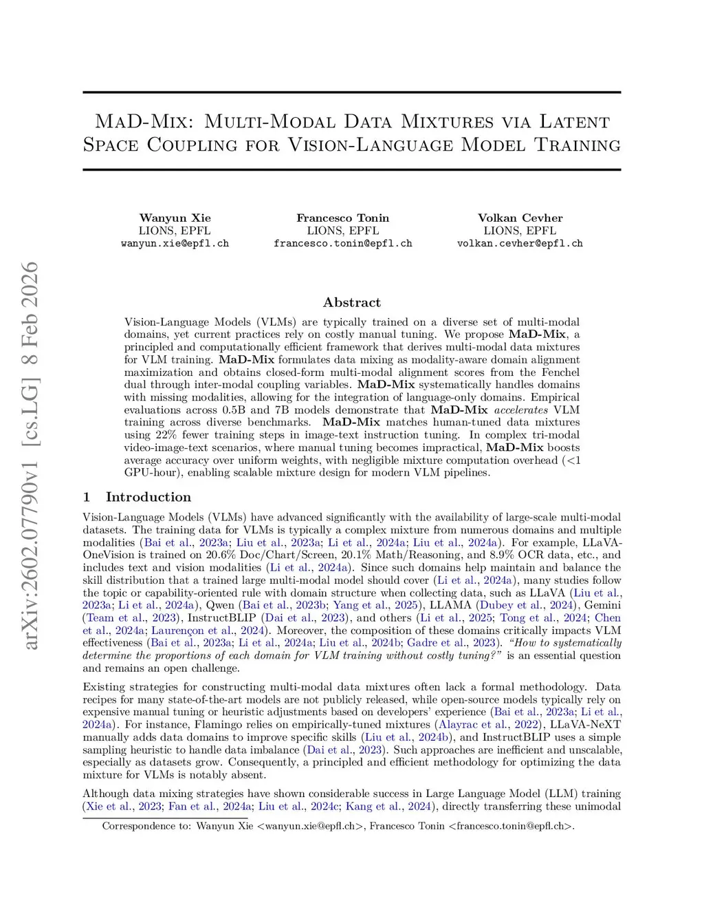 MaD-Mix: Multi-Modal Data Mixtures via Latent Space Coupling for Vision-Language Model Training