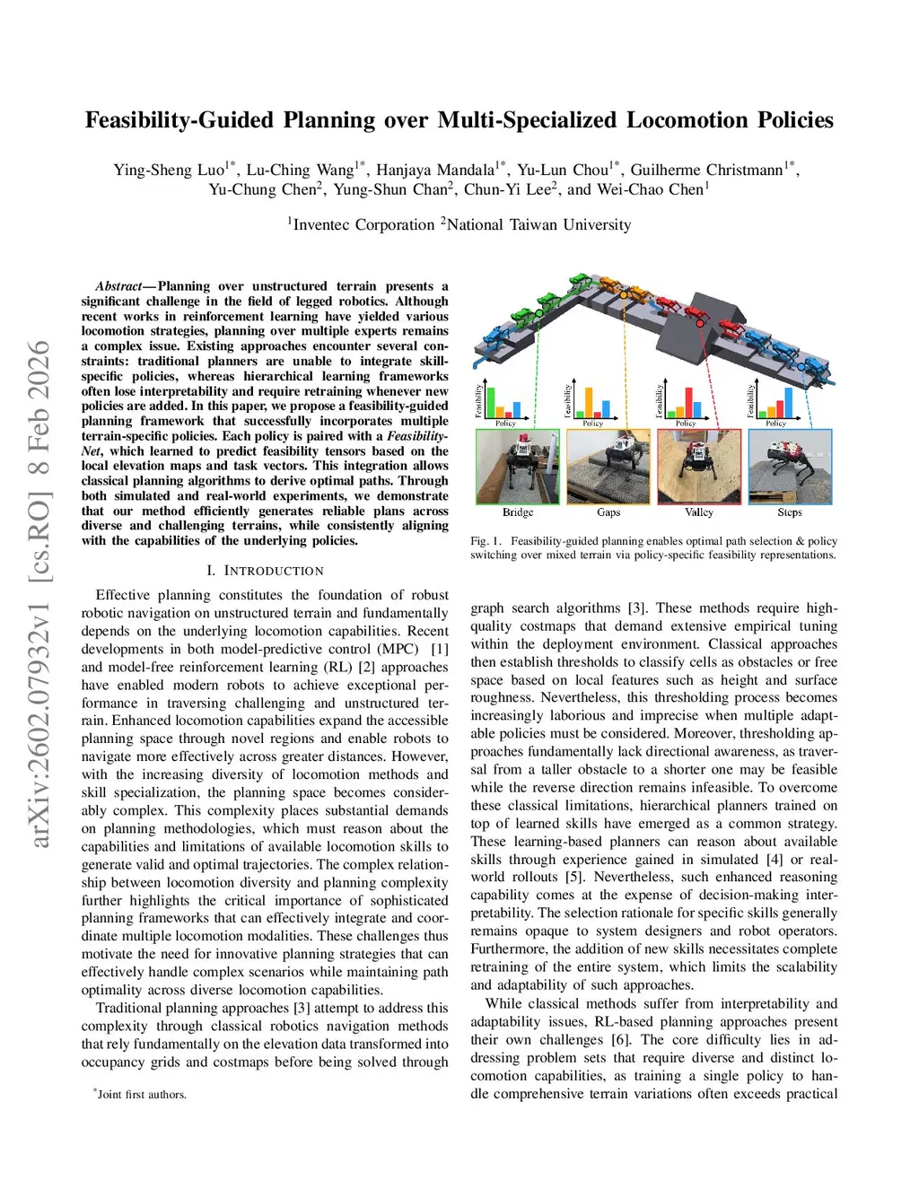 Planning over unstructured terrain presents a significant challenge in the field of legged robotics. Although recent works in reinforcement learning have yielded various locomotion strategies, planning over multiple experts remains a complex issue. Existing approaches encounter several constraints: traditional planners are unable to integrate skill-specific policies, whereas hierarchical learning frameworks often lose interpretability and require retraining whenever new policies are added. In this paper, we propose a feasibility-guided planning framework that successfully incorporates multiple terrain-specific policies. Each policy is paired with a Feasibility-Net, which learned to predict feasibility tensors based on the local elevation maps and task vectors. This integration allows classical planning algorithms to derive optimal paths. Through both simulated and real-world experiments, we demonstrate that our method efficiently generates reliable plans across diverse and challenging terrains, while consistently aligning with the capabilities of the underlying policies.