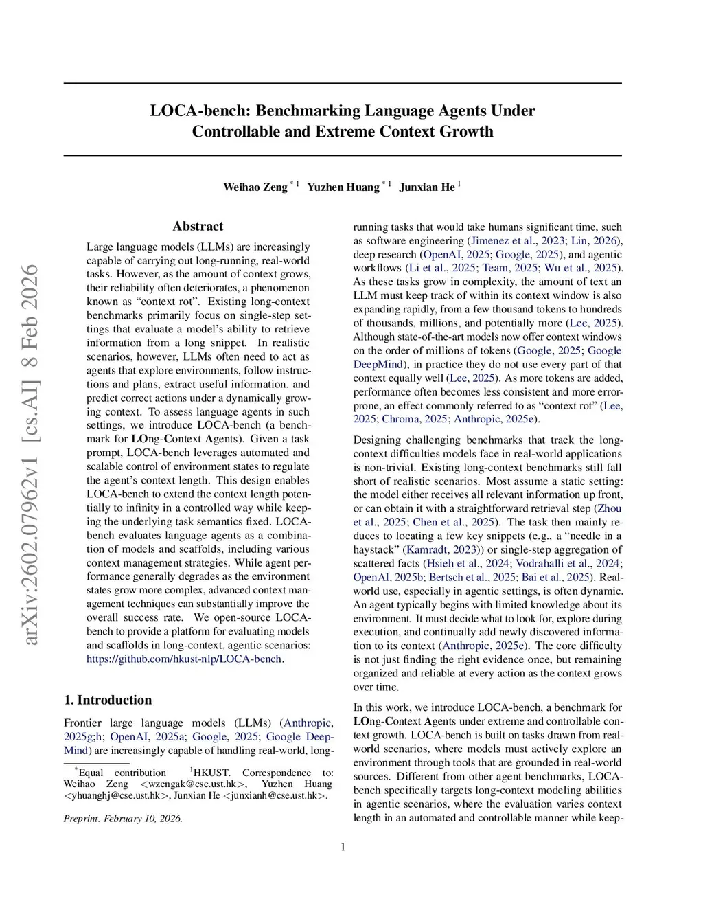 LOCA-bench: Benchmarking Language Agents Under Controllable and Extreme Context Growth