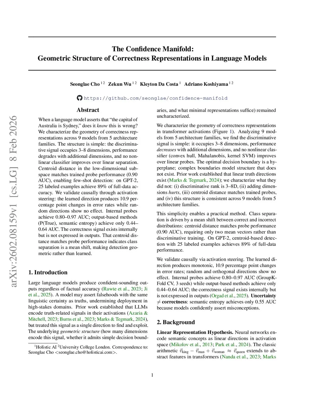The Confidence Manifold: Geometric Structure of Correctness Representations in Language Models