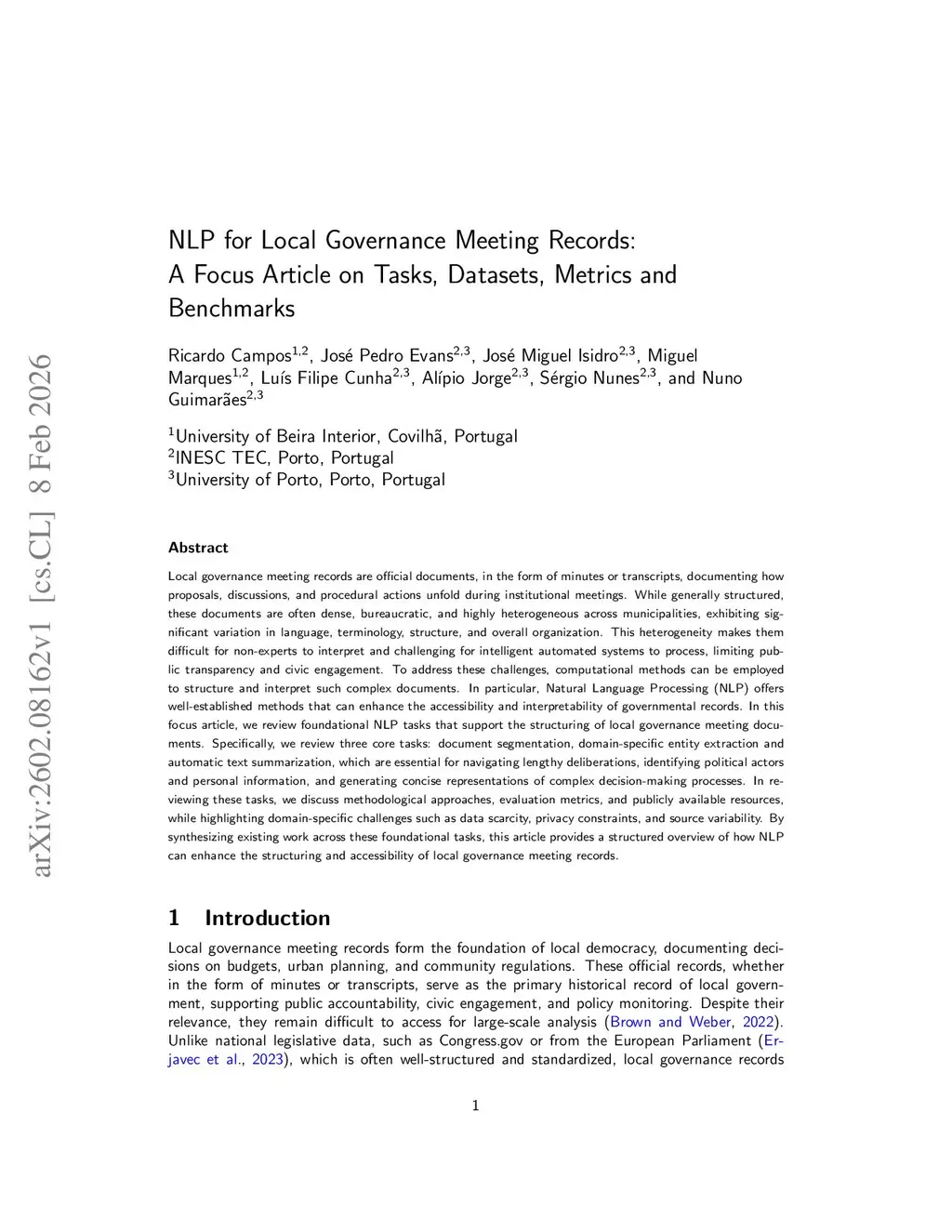 NLP for Local Governance Meeting Records: A Focus Article on Tasks, Datasets, Metrics and Benchmark