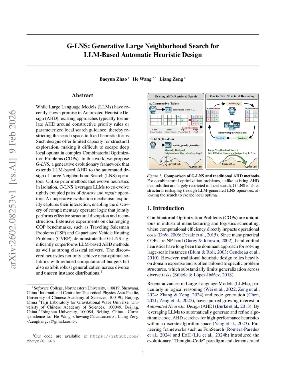 G-LNS: Generative Large Neighborhood Search for LLM-Based Automatic Heuristic Design