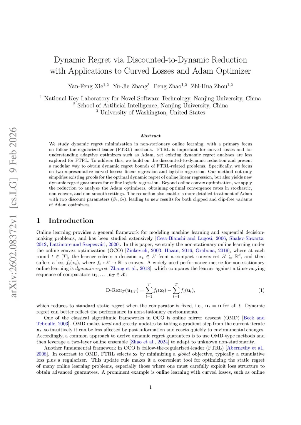 We study dynamic regret minimization in non-stationary online learning, with a primary focus on follow-the-regularized-leader (FTRL) methods. FTRL is important for curved losses and for understanding adaptive optimizers such as Adam, yet existing dynamic regret analyses are less explored for FTRL. To address this, we build on the discounted-to-dynamic reduction and present a modular way to obtain dynamic regret bounds of FTRL-related problems. Specifically, we focus on two representative curved losses: linear regression and logistic regression. Our method not only simplifies existing proofs for the optimal dynamic regret of online linear regression, but also yields new dynamic regret guarantees for online logistic regression. Beyond online convex optimization, we apply the reduction to analyze the Adam optimizers, obtaining optimal convergence rates in stochastic, non-convex, and non-smooth settings. The reduction also enables a more detailed treatment of Adam with two discount parameters , leading to new results for both clipped and clip-free variants of Adam optimizers.