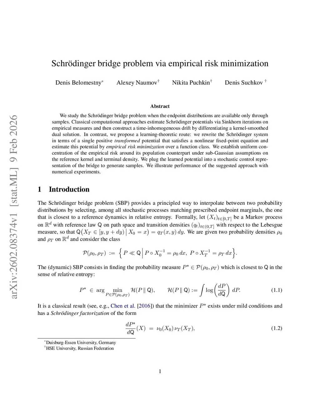 Schrödinger bridge problem via empirical risk minimization
