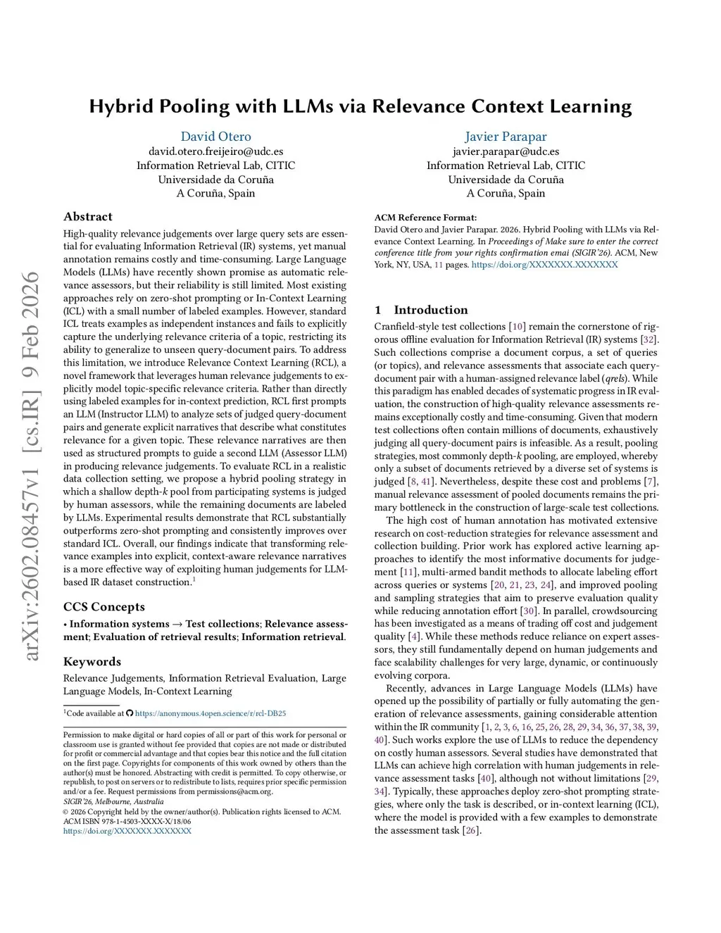 Hybrid Pooling with LLMs via Relevance Context Learning