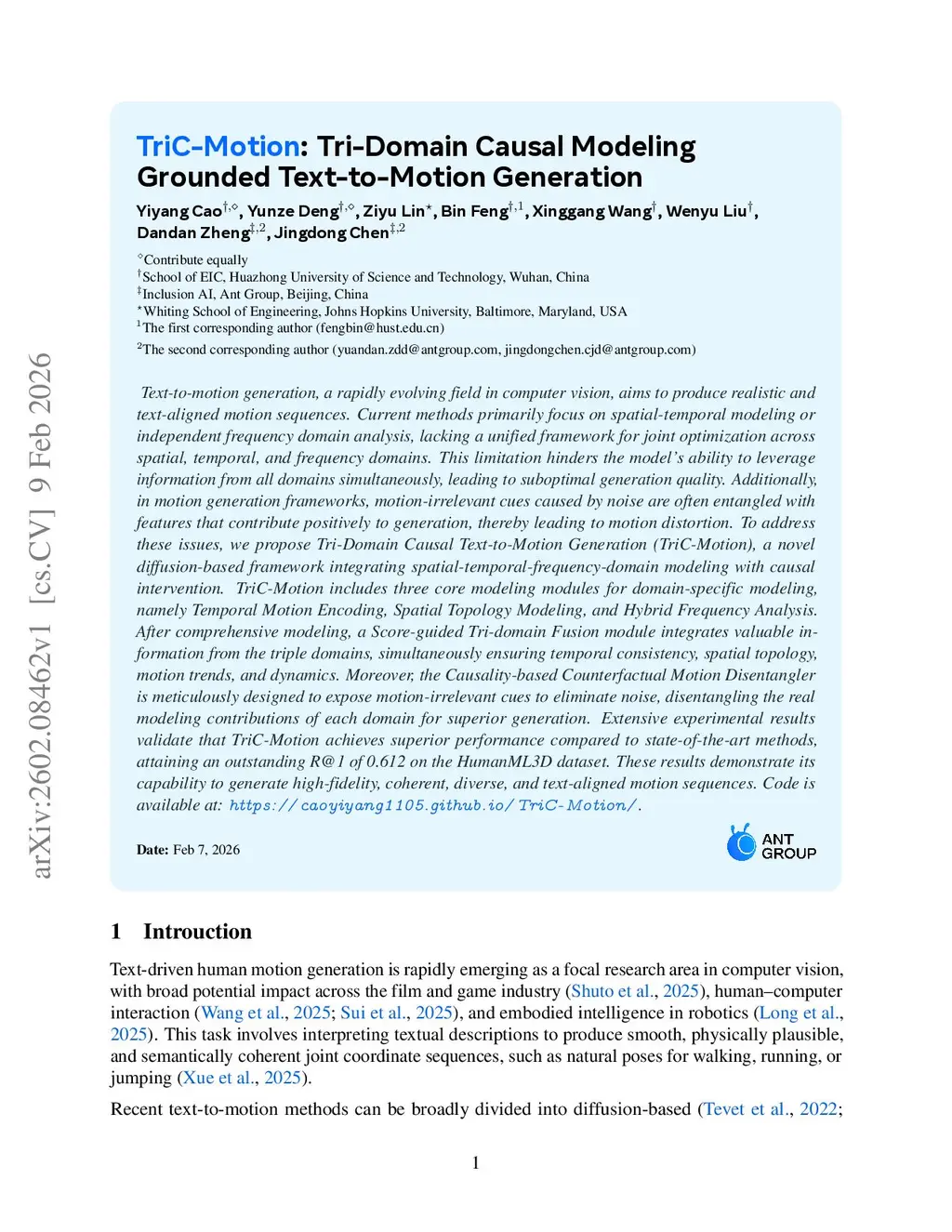 TriC-Motion: Tri-Domain Causal Modeling Grounded Text-to-Motion Generation