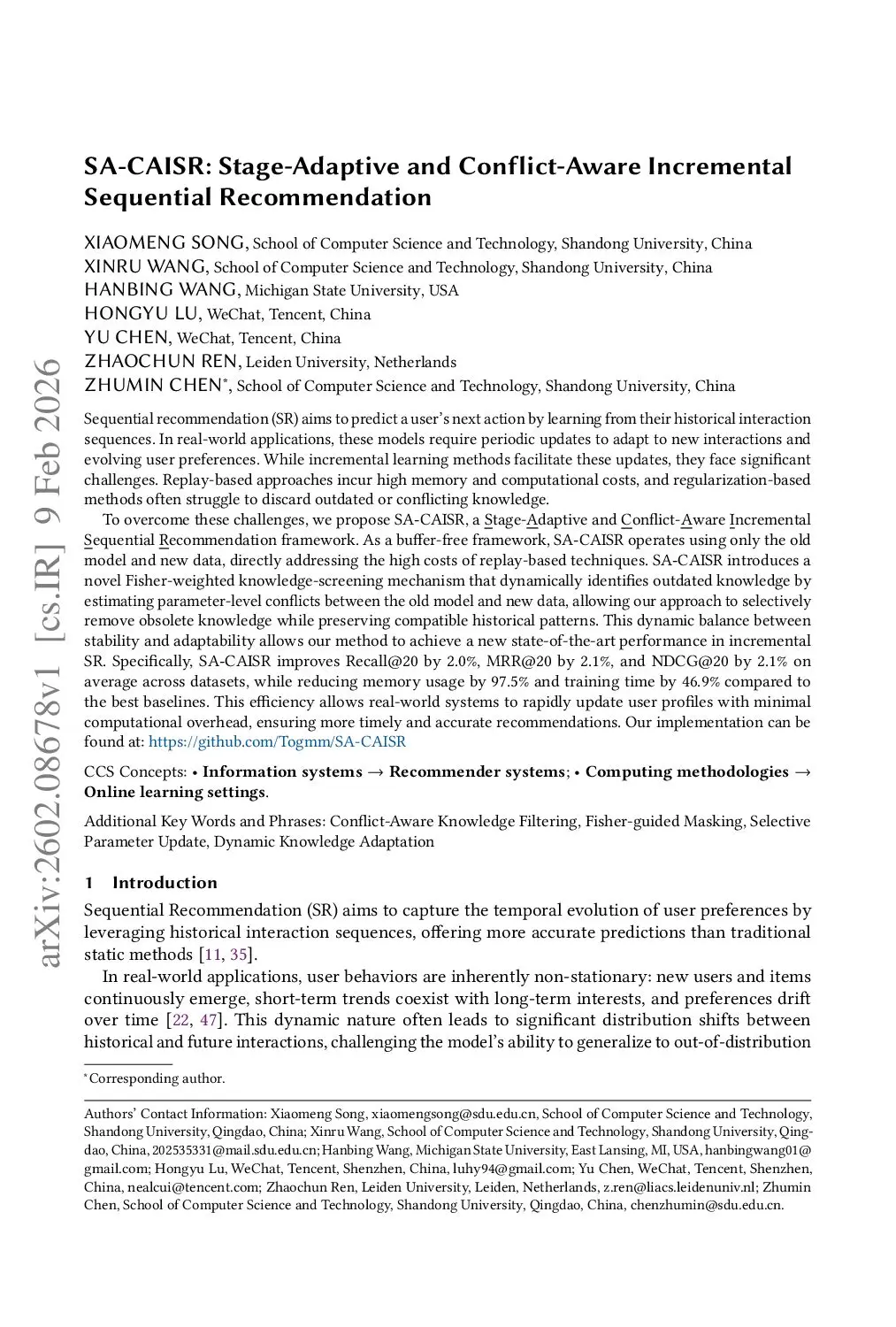 SA-CAISR: Stage-Adaptive and Conflict-Aware Incremental Sequential Recommendation