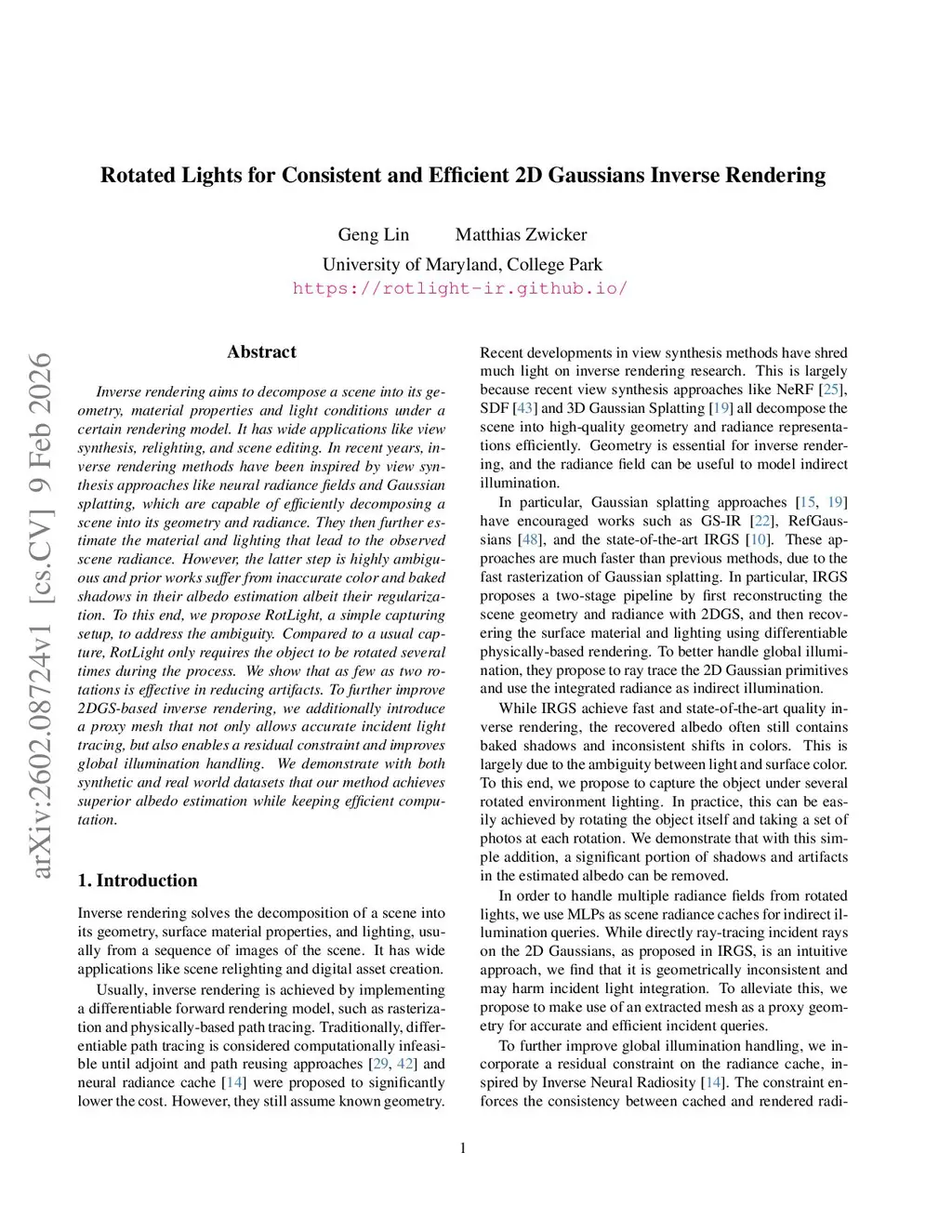 Inverse rendering aims to decompose a scene into its geometry, material properties and light conditions under a certain rendering model. It has wide applications like view synthesis, relighting, and scene editing. In recent years, inverse rendering methods have been inspired by view synthesis approaches like neural radiance fields and Gaussian splatting, which are capable of efficiently decomposing a scene into its geometry and radiance. They then further estimate the material and lighting that lead to the observed scene radiance. However, the latter step is highly ambiguous and prior works suffer from inaccurate color and baked shadows in their albedo estimation albeit their regularization. To this end, we propose RotLight, a simple capturing setup, to address the ambiguity. Compared to a usual capture, RotLight only requires the object to be rotated several times during the process. We show that as few as two rotations is effective in reducing artifacts. To further improve 2DGS-based inverse rendering, we additionally introduce a proxy mesh that not only allows accurate incident light tracing, but also enables a residual constraint and improves global illumination handling. We demonstrate with both synthetic and real world datasets that our method achieves superior albedo estimation while keeping efficient computation.