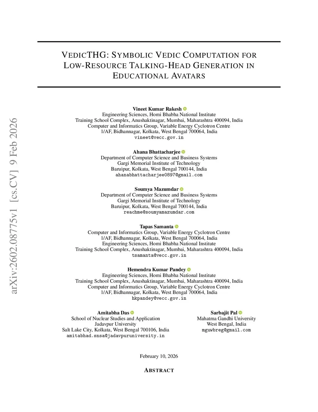 VedicTHG: Symbolic Vedic Computation for Low-Resource Talking-Head Generation in Educational Avatars