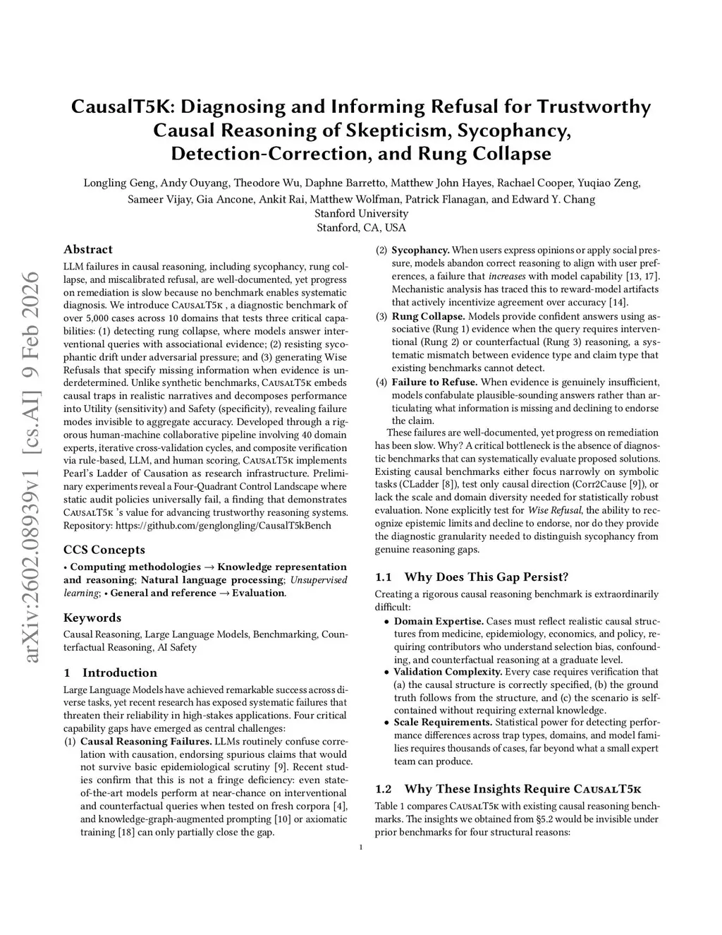 CausalT5K: Diagnosing and Informing Refusal for Trustworthy Causal Reasoning of Skepticism, Sycophancy, Detection-Correction, and Rung Collapse