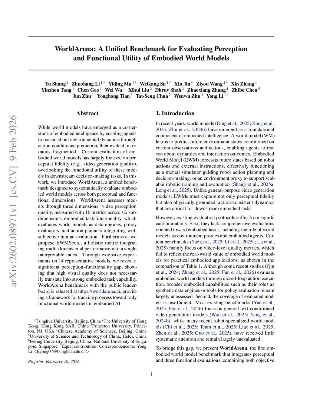 WorldArena: A Unified Benchmark for Evaluating Perception and Functional Utility of Embodied World Models