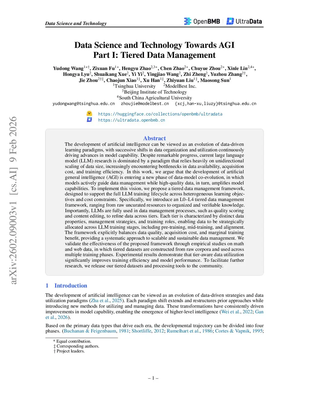 Data Science and Technology Towards AGI Part I: Tiered Data Management