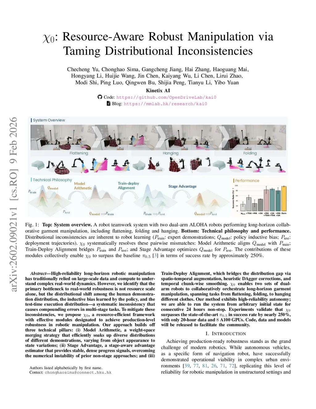 High-reliability long-horizon robotic manipulation has traditionally relied on large-scale data and compute to understand complex real-world dynamics. However, we identify that the primary bottleneck to real-world robustness is not resource scale alone, but the distributional shift among the human demonstration distribution, the inductive bias learned by the policy, and the test-time execution distribution -- a systematic inconsistency that causes compounding errors in multi-stage tasks. To mitigate these inconsistencies, we propose , a resource-efficient framework with effective modules designated to achieve production-level robustness in robotic manipulation. Our approach builds off three technical pillars: (i) Model Arithmetic, a weight-space merging strategy that efficiently soaks up diverse distributions of different demonstrations, varying from object appearance to state variations; (ii) Stage Advantage, a stage-aware advantage estimator that provides stable, dense progress signals, overcoming the numerical instability of prior non-stage approaches; and (iii) Train-Deploy Alignment, which bridges the distribution gap via spatio-temporal augmentation, heuristic DAgger corrections, and temporal chunk-wise smoothing. enables two sets of dual-arm robots to collaboratively orchestrate long-horizon garment manipulation, spanning tasks from flattening, folding, to hanging different clothes. Our method exhibits high-reliability autonomy; we are able to run the system from arbitrary initial state for consecutive 24 hours non-stop. Experiments validate that surpasses the state-of-the-art in success rate by nearly 250%, with only 20-hour data and 8 A100 GPUs. Code, data and models will be released to facilitate the community.