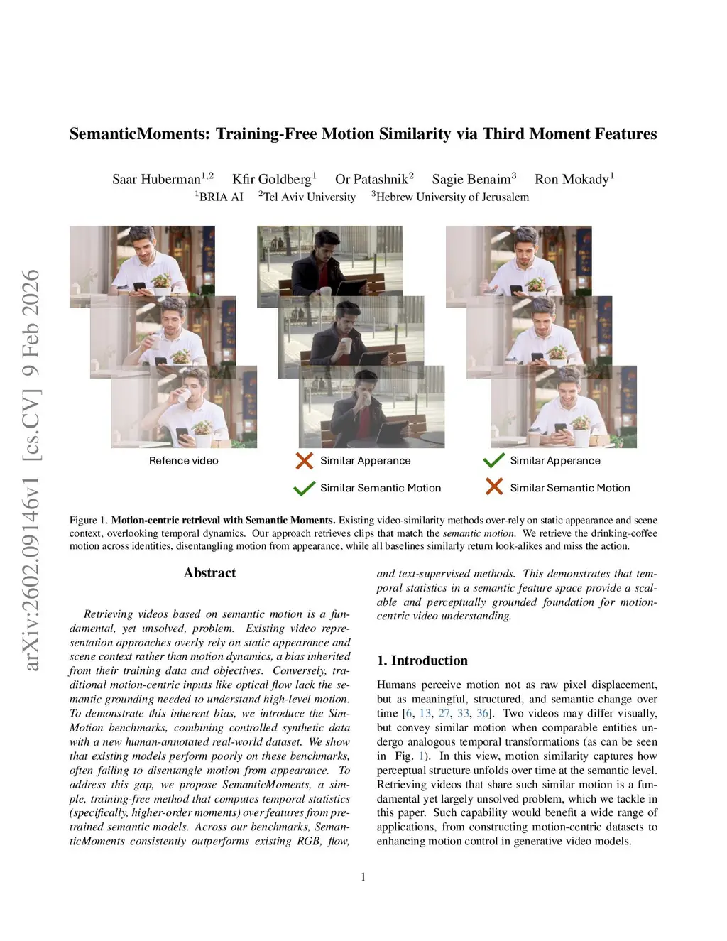 Retrieving videos based on semantic motion is a fundamental, yet unsolved, problem. Existing video representation approaches overly rely on static appearance and scene context rather than motion dynamics, a bias inherited from their training data and objectives. Conversely, traditional motion-centric inputs like optical flow lack the semantic grounding needed to understand high-level motion. To demonstrate this inherent bias, we introduce the SimMotion benchmarks, combining controlled synthetic data with a new human-annotated real-world dataset. We show that existing models perform poorly on these benchmarks, often failing to disentangle motion from appearance. To address this gap, we propose SemanticMoments, a simple, training-free method that computes temporal statistics (specifically, higher-order moments) over features from pre-trained semantic models. Across our benchmarks, SemanticMoments consistently outperforms existing RGB, flow, and text-supervised methods. This demonstrates that temporal statistics in a semantic feature space provide a scalable and perceptually grounded foundation for motion-centric video understanding.