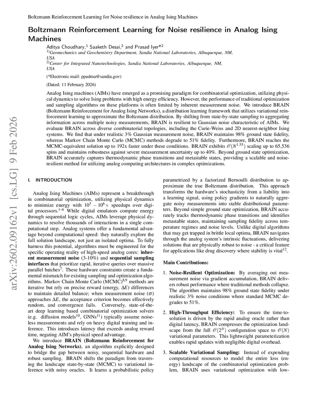Analog Ising machines (AIMs) have emerged as a promising paradigm for combinatorial optimization, utilizing physical dynamics to solve Ising problems with high energy efficiency. However, the performance of traditional optimization and sampling algorithms on these platforms is often limited by inherent measurement noise. We introduce BRAIN (Boltzmann Reinforcement for Analog Ising Networks), a distribution learning framework that utilizes variational reinforcement learning to approximate the Boltzmann distribution. By shifting from state-by-state sampling to aggregating information across multiple noisy measurements, BRAIN is resilient to Gaussian noise characteristic of AIMs. We evaluate BRAIN across diverse combinatorial topologies, including the Curie-Weiss and 2D nearest-neighbor Ising systems. We find that under realistic 3\% Gaussian measurement noise, BRAIN maintains 98\% ground state fidelity, whereas Markov Chain Monte Carlo (MCMC) methods degrade to 51\% fidelity. Furthermore, BRAIN reaches the MCMC-equivalent solution up to 192x faster under these conditions. BRAIN exhibits scaling up to 65,536 spins and maintains robustness against severe measurement uncertainty up to 40\%. Beyond ground state optimization, BRAIN accurately captures thermodynamic phase transitions and metastable states, providing a scalable and noise-resilient method for utilizing analog computing architectures in complex optimizations.