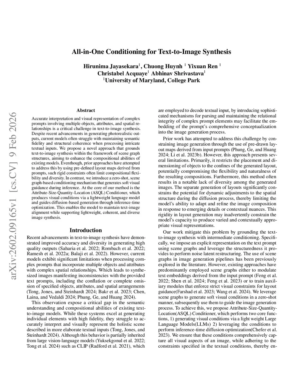 All-in-One Conditioning for Text-to-Image Synthesis
