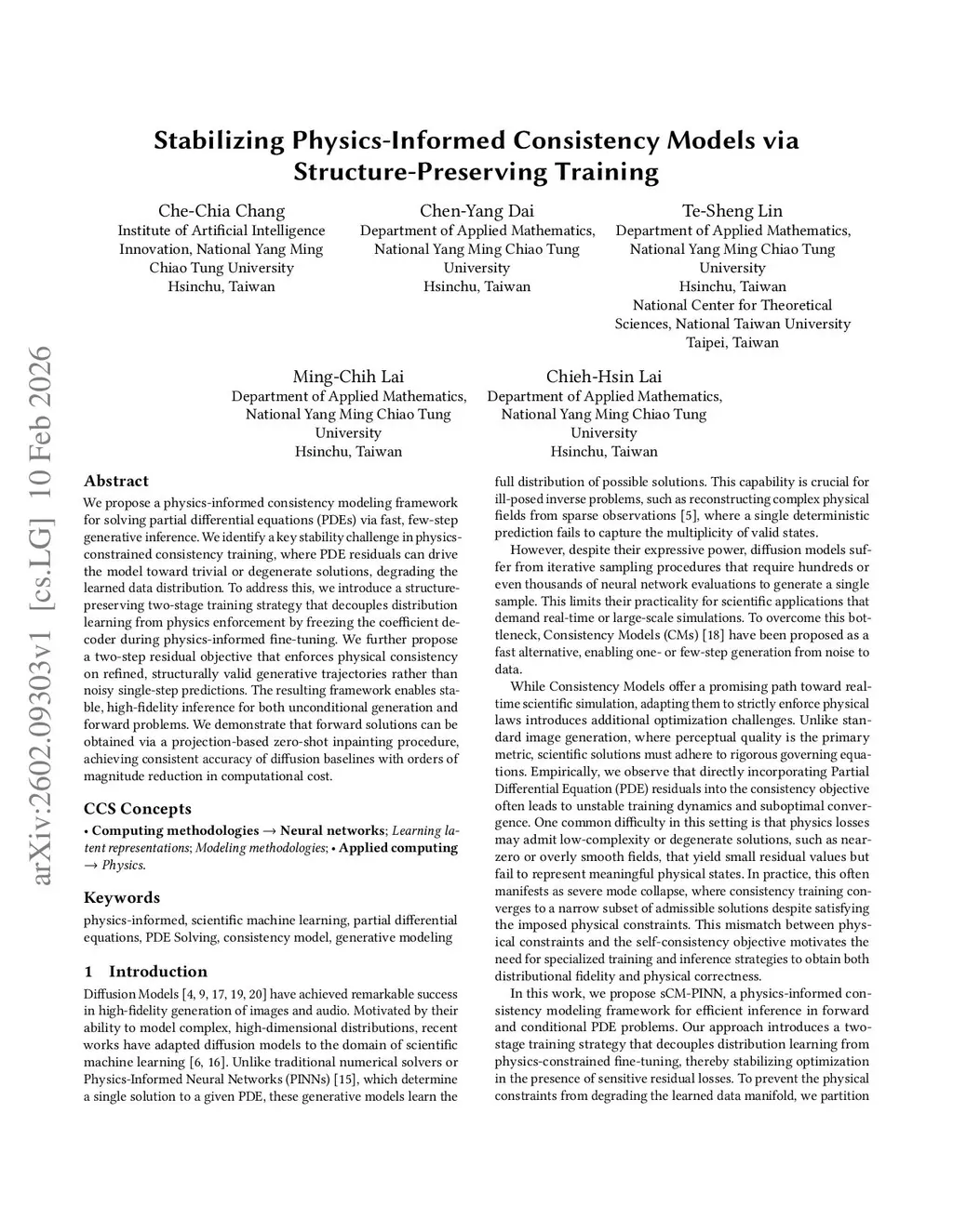 Stabilizing Physics-Informed Consistency Models via Structure-Preserving Training