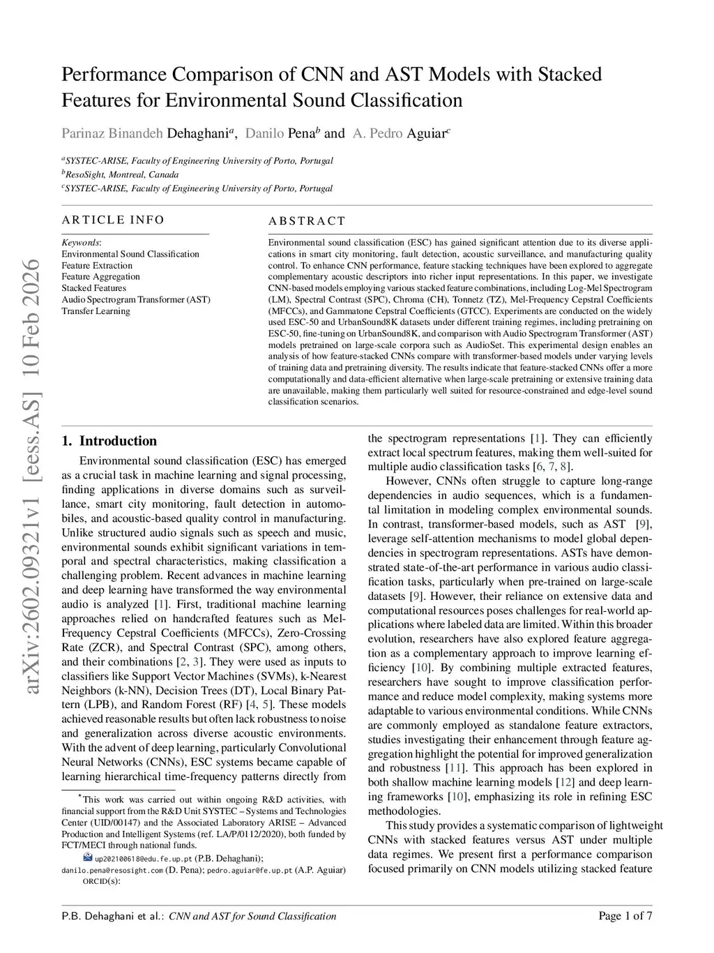 Evaluating CNN with Stacked Feature Representations and Audio Spectrogram Transformer Models for Sound Classification