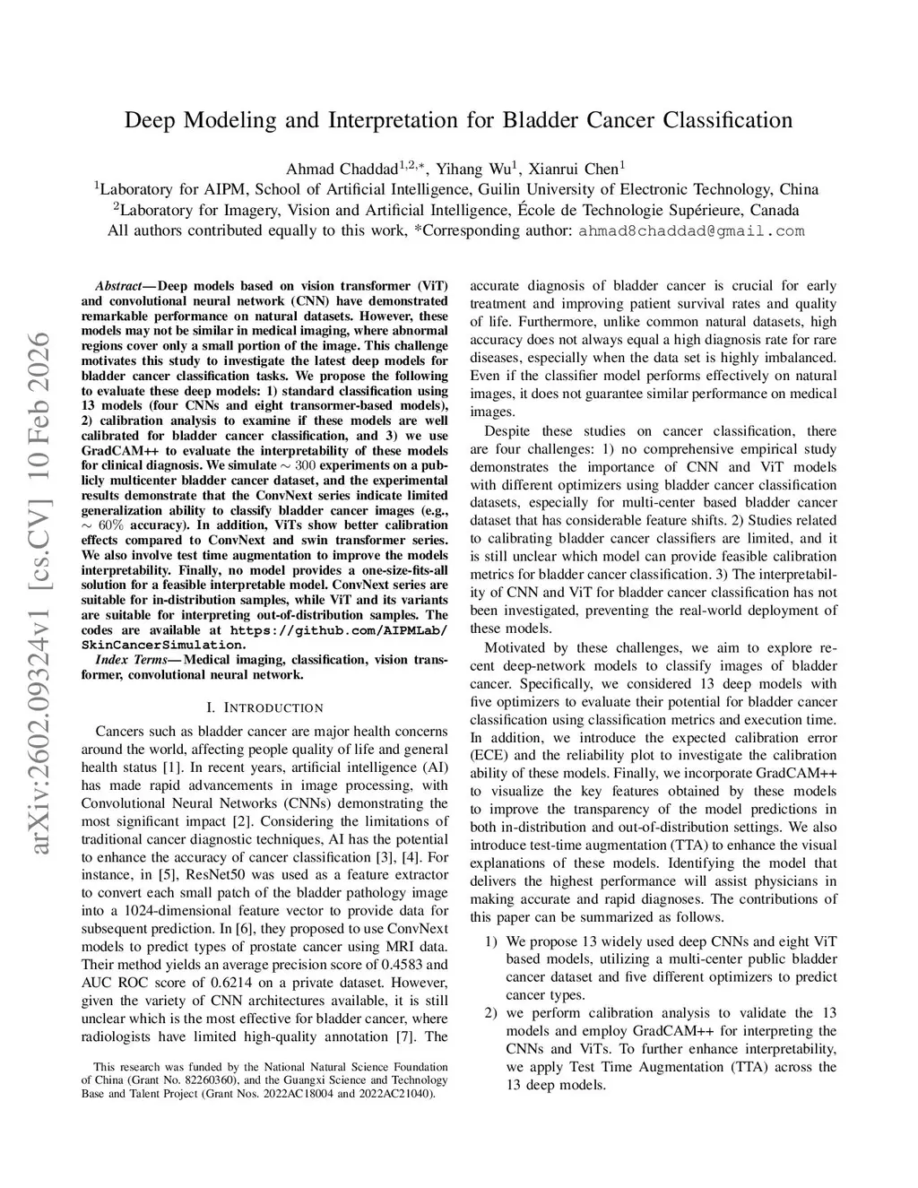 Deep models based on vision transformer (ViT) and convolutional neural network (CNN) have demonstrated remarkable performance on natural datasets. However, these models may not be similar in medical imaging, where abnormal regions cover only a small portion of the image. This challenge motivates this study to investigate the latest deep models for bladder cancer classification tasks. We propose the following to evaluate these deep models: 1) standard classification using 13 models (four CNNs and eight transormer-based models), 2) calibration analysis to examine if these models are well calibrated for bladder cancer classification, and 3) we use GradCAM++ to evaluate the interpretability of these models for clinical diagnosis. We simulate experiments on a publicly multicenter bladder cancer dataset, and the experimental results demonstrate that the ConvNext series indicate limited generalization ability to classify bladder cancer images (e.g., accuracy). In addition, ViTs show better calibration effects compared to ConvNext and swin transformer series. We also involve test time augmentation to improve the models interpretability. Finally, no model provides a one-size-fits-all solution for a feasible interpretable model. ConvNext series are suitable for in-distribution samples, while ViT and its variants are suitable for interpreting out-of-distribution samples.