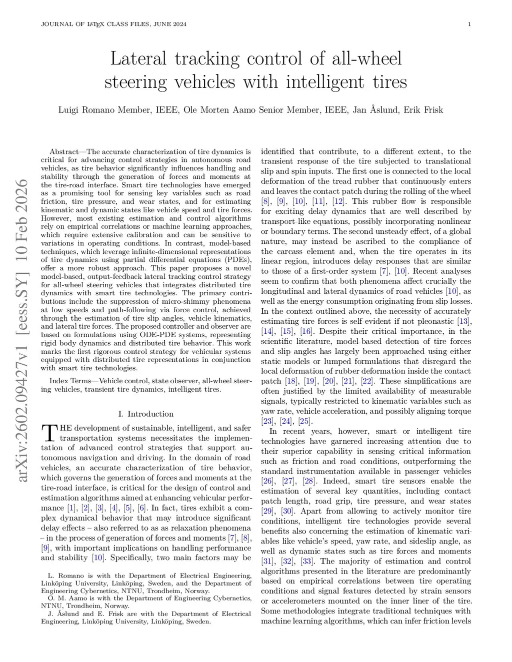 Lateral tracking control of all-wheel steering vehicles with intelligent tires