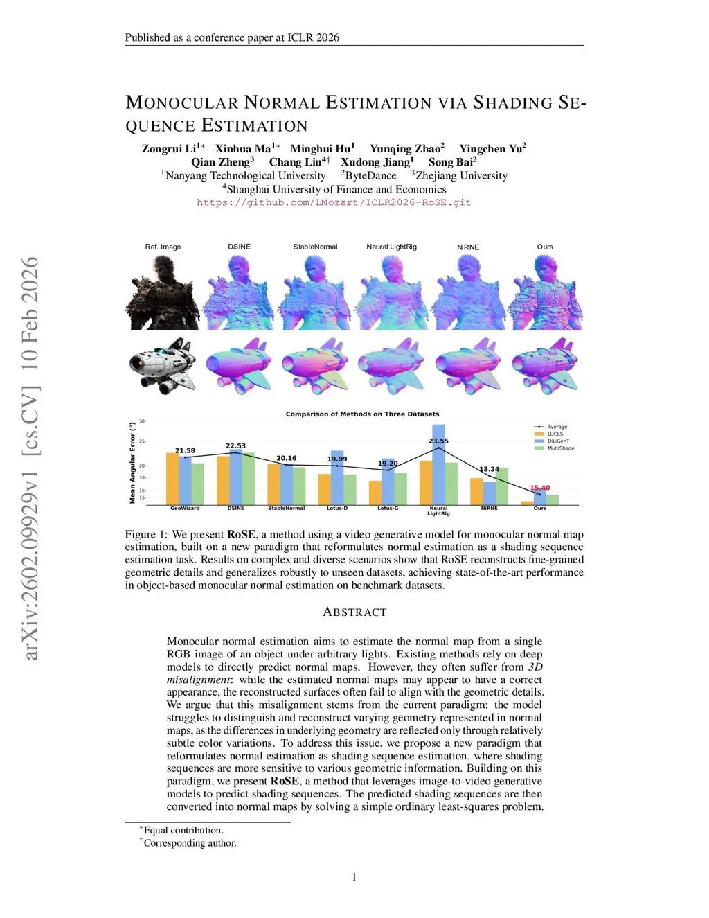 Monocular normal estimation aims to estimate the normal map from a single RGB image of an object under arbitrary lights. Existing methods rely on deep models to directly predict normal maps. However, they often suffer from 3D misalignment: while the estimated normal maps may appear to have a correct appearance, the reconstructed surfaces often fail to align with the geometric details. We argue that this misalignment stems from the current paradigm: the model struggles to distinguish and reconstruct varying geometry represented in normal maps, as the differences in underlying geometry are reflected only through relatively subtle color variations. To address this issue, we propose a new paradigm that reformulates normal estimation as shading sequence estimation, where shading sequences are more sensitive to various geometric information. Building on this paradigm, we present RoSE, a method that leverages image-to-video generative models to predict shading sequences. The predicted shading sequences are then converted into normal maps by solving a simple ordinary least-squares problem. To enhance robustness and better handle complex objects, RoSE is trained on a synthetic dataset, MultiShade, with diverse shapes, materials, and light conditions. Experiments demonstrate that RoSE achieves state-of-the-art performance on real-world benchmark datasets for object-based monocular normal estimation.