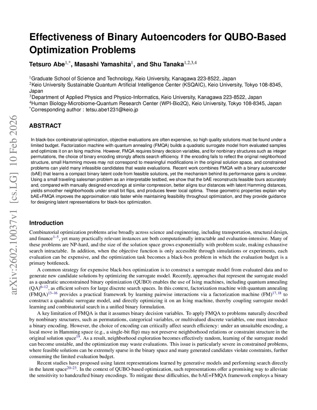 In black-box combinatorial optimization, objective evaluations are often expensive, so high quality solutions must be found under a limited budget. Factorization machine with quantum annealing (FMQA) builds a quadratic surrogate model from evaluated samples and optimizes it on an Ising machine. However, FMQA requires binary decision variables, and for nonbinary structures such as integer permutations, the choice of binary encoding strongly affects search efficiency. If the encoding fails to reflect the original neighborhood structure, small Hamming moves may not correspond to meaningful modifications in the original solution space, and constrained problems can yield many infeasible candidates that waste evaluations. Recent work combines FMQA with a binary autoencoder (bAE) that learns a compact binary latent code from feasible solutions, yet the mechanism behind its performance gains is unclear. Using a small traveling salesman problem as an interpretable testbed, we show that the bAE reconstructs feasible tours accurately and, compared with manually designed encodings at similar compression, better aligns tour distances with latent Hamming distances, yields smoother neighborhoods under small bit flips, and produces fewer local optima. These geometric properties explain why bAE+FMQA improves the approximation ratio faster while maintaining feasibility throughout optimization, and they provide guidance for designing latent representations for black-box optimization.