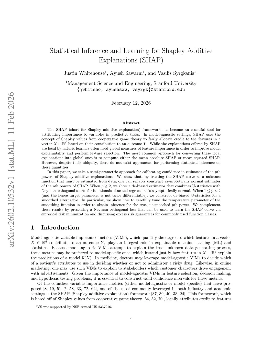 Statistical Inference and Learning for Shapley Additive Explanations (SHAP)