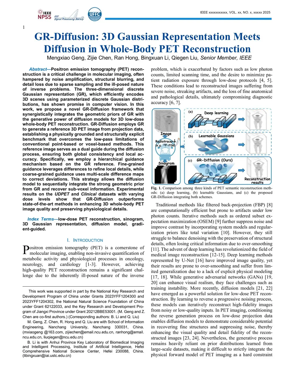 Positron emission tomography (PET) reconstruction is a critical challenge in molecular imaging, often hampered by noise amplification, structural blurring, and detail loss due to sparse sampling and the ill-posed nature of inverse problems. The three-dimensional discrete Gaussian representation (GR), which efficiently encodes 3D scenes using parameterized discrete Gaussian distributions, has shown promise in computer vision. In this work, we pro-pose a novel GR-Diffusion framework that synergistically integrates the geometric priors of GR with the generative power of diffusion models for 3D low-dose whole-body PET reconstruction. GR-Diffusion employs GR to generate a reference 3D PET image from projection data, establishing a physically grounded and structurally explicit benchmark that overcomes the low-pass limitations of conventional point-based or voxel-based methods. This reference image serves as a dual guide during the diffusion process, ensuring both global consistency and local accuracy. Specifically, we employ a hierarchical guidance mechanism based on the GR reference. Fine-grained guidance leverages differences to refine local details, while coarse-grained guidance uses multi-scale difference maps to correct deviations. This strategy allows the diffusion model to sequentially integrate the strong geometric prior from GR and recover sub-voxel information. Experimental results on the UDPET and Clinical datasets with varying dose levels show that GR-Diffusion outperforms state-of-the-art methods in enhancing 3D whole-body PET image quality and preserving physiological details.