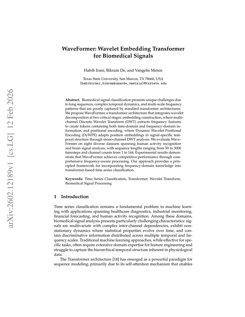 WaveFormer: Wavelet Embedding Transformer for Biomedical Signals