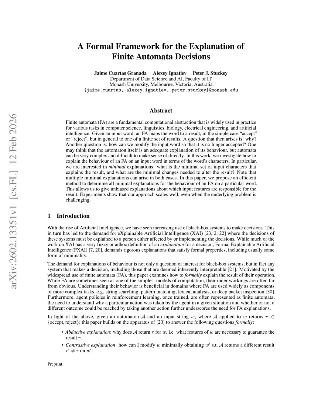 A Formal Framework for the Explanation of Finite Automata Decisions