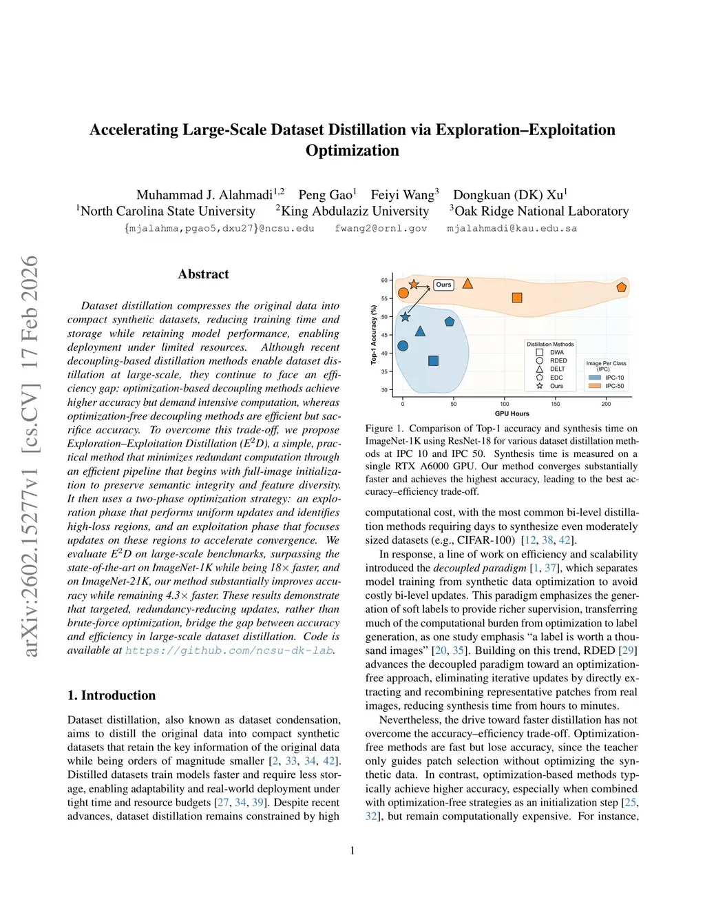 Accelerating Large-Scale Dataset Distillation via Exploration-Exploitation Optimization