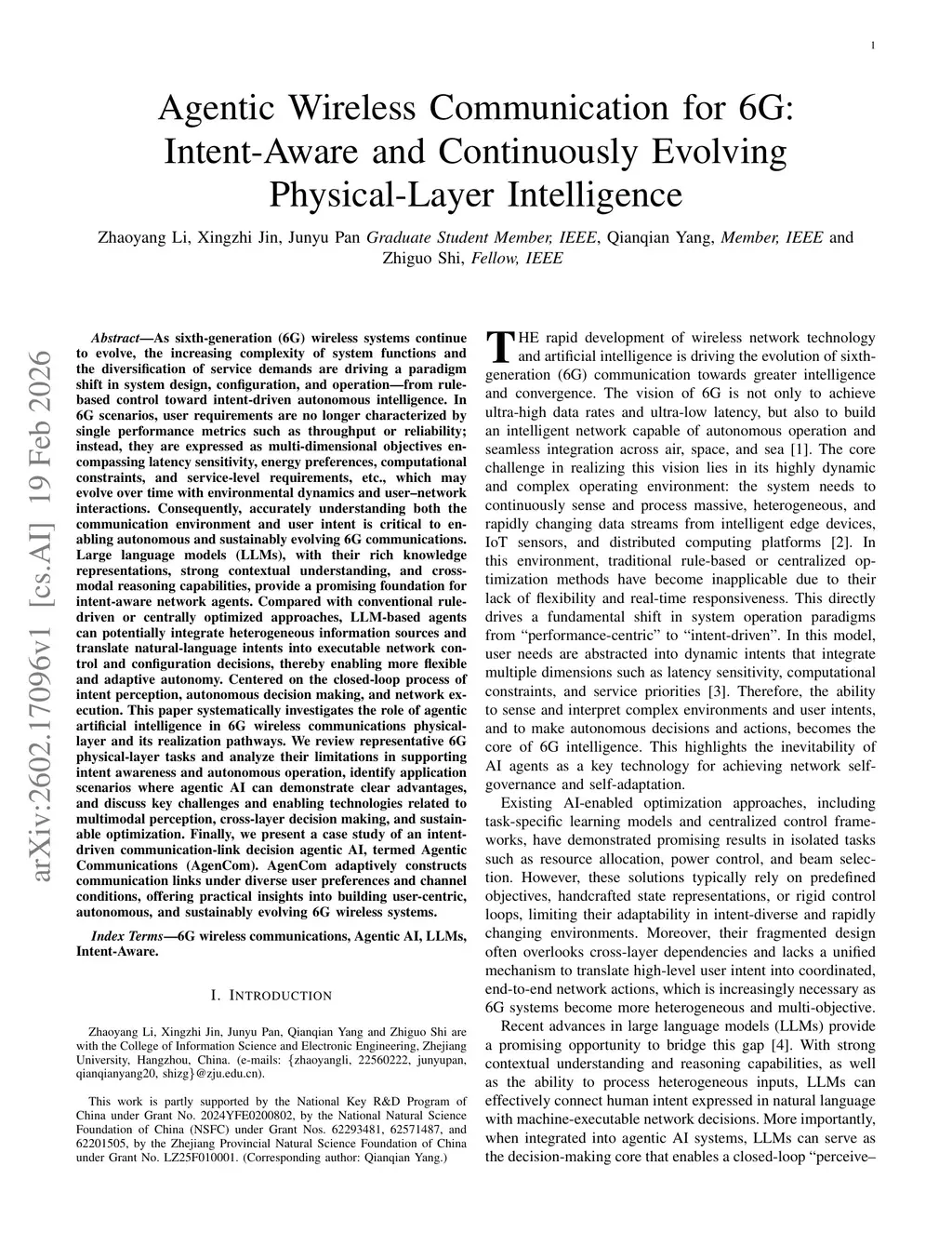 As 6G wireless systems evolve, growing functional complexity and diverse service demands are driving a shift from rule-based control to intent-driven autonomous intelligence. User requirements are no longer captured by a single metric (e.g., throughput or reliability), but by multi-dimensional objectives such as latency sensitivity, energy preference, computational constraints, and service-level requirements. These objectives may also change over time due to environmental dynamics and user-network interactions. Therefore, accurate understanding of both the communication environment and user intent is critical for autonomous and sustainably evolving 6G communications.Large language models (LLMs), with strong contextual understanding and cross-modal reasoning, provide a promising foundation for intent-aware network agents. Compared with rule-driven or centrally optimized designs, LLM-based agents can integrate heterogeneous information and translate natural-language intents into executable control and configuration decisions.Focusing on a closed-loop pipeline of intent perception, autonomous decision making, and network execution, this paper investigates agentic AI for the 6G physical layer and its realization pathways. We review representative physical-layer tasks and their limitations in supporting intent awareness and autonomy, identify application scenarios where agentic AI is advantageous, and discuss key challenges and enabling technologies in multimodal perception, cross-layer decision making, and sustainable optimization. Finally, we present a case study of an intent-driven link decision agent, termed AgenCom, which adaptively constructs communication links under diverse user preferences and channel conditions.