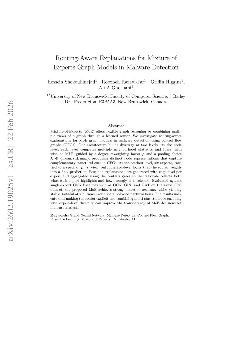 Mixture-of-Experts (MoE) offers flexible graph reasoning by combining multiple views of a graph through a learned router. We investigate routing-aware explanations for MoE graph models in malware detection using control flow graphs (CFGs). Our architecture builds diversity at two levels. At the node level, each layer computes multiple neighborhood statistics and fuses them with an MLP, guided by a degree reweighting factor rho and a pooling choice lambda in {mean, std, max}, producing distinct node representations that capture complementary structural cues in CFGs. At the readout level, six experts, each tied to a specific (rho, lambda) view, output graph-level logits that the router weights into a final prediction. Post-hoc explanations are generated with edge-level attributions per expert and aggregated using the router gates so the rationale reflects both what each expert highlights and how strongly it is selected. Evaluated against single-expert GNN baselines such as GCN, GIN, and GAT on the same CFG dataset, the proposed MoE achieves strong detection accuracy while yielding stable, faithful attributions under sparsity-based perturbations. The results indicate that making the router explicit and combining multi-statistic node encoding with expert-level diversity can improve the transparency of MoE decisions for malware analysis.